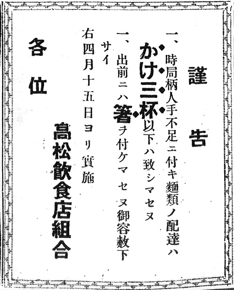 最後に、この年の4月に出た高松飲食店組合の広告。